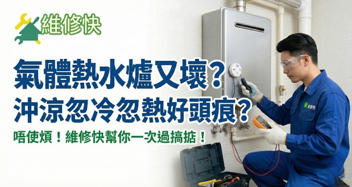 「維修快」提供專業氣體熱水爐檢測與維修服務, 由具經驗技師按安全流程處理, 協助你盡快回復穩定可靠的熱水供應。